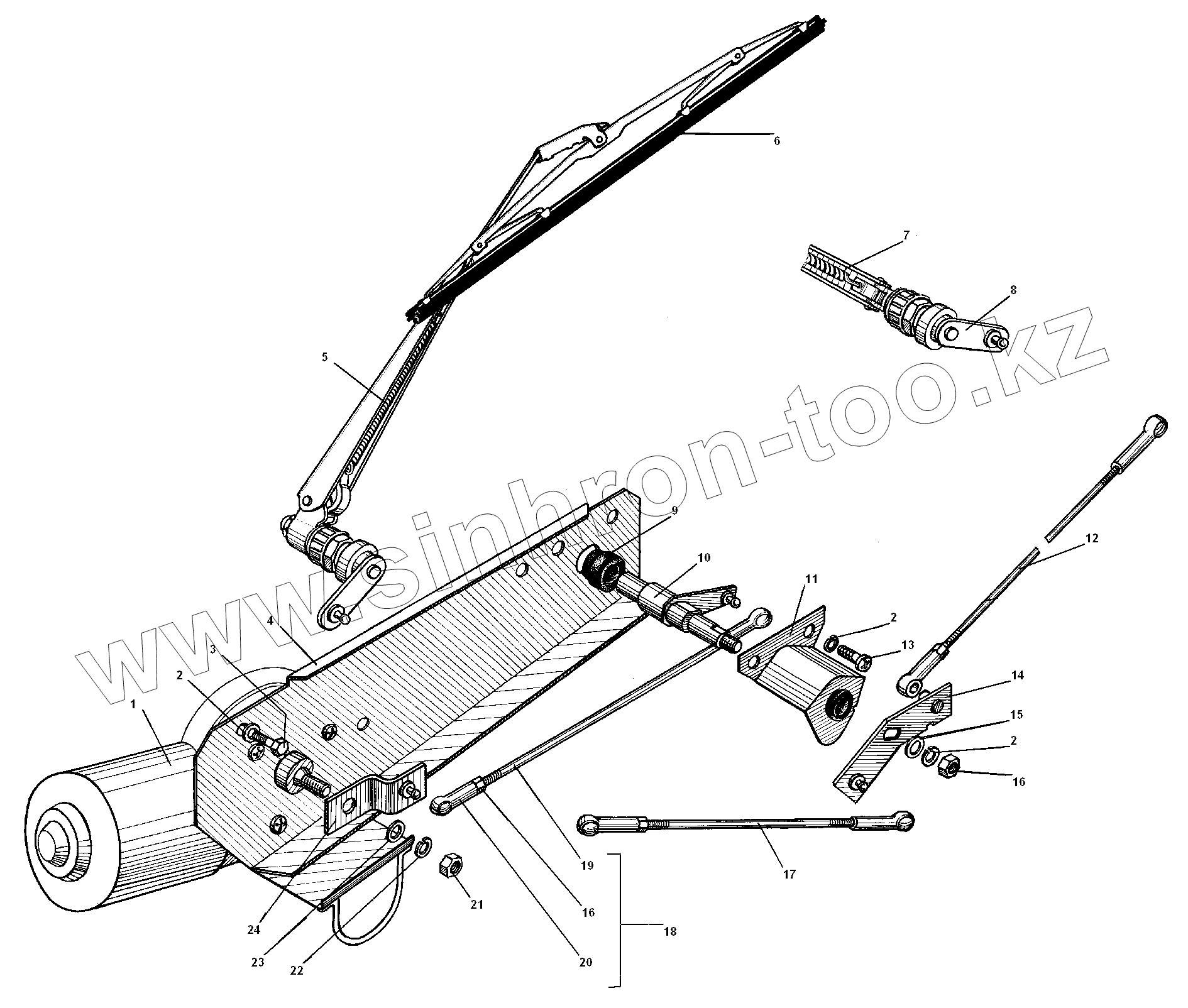 Каталог запасных частей к технике: УралАЗ УРАЛ-5557-31. Стеклоочиститель и его привод