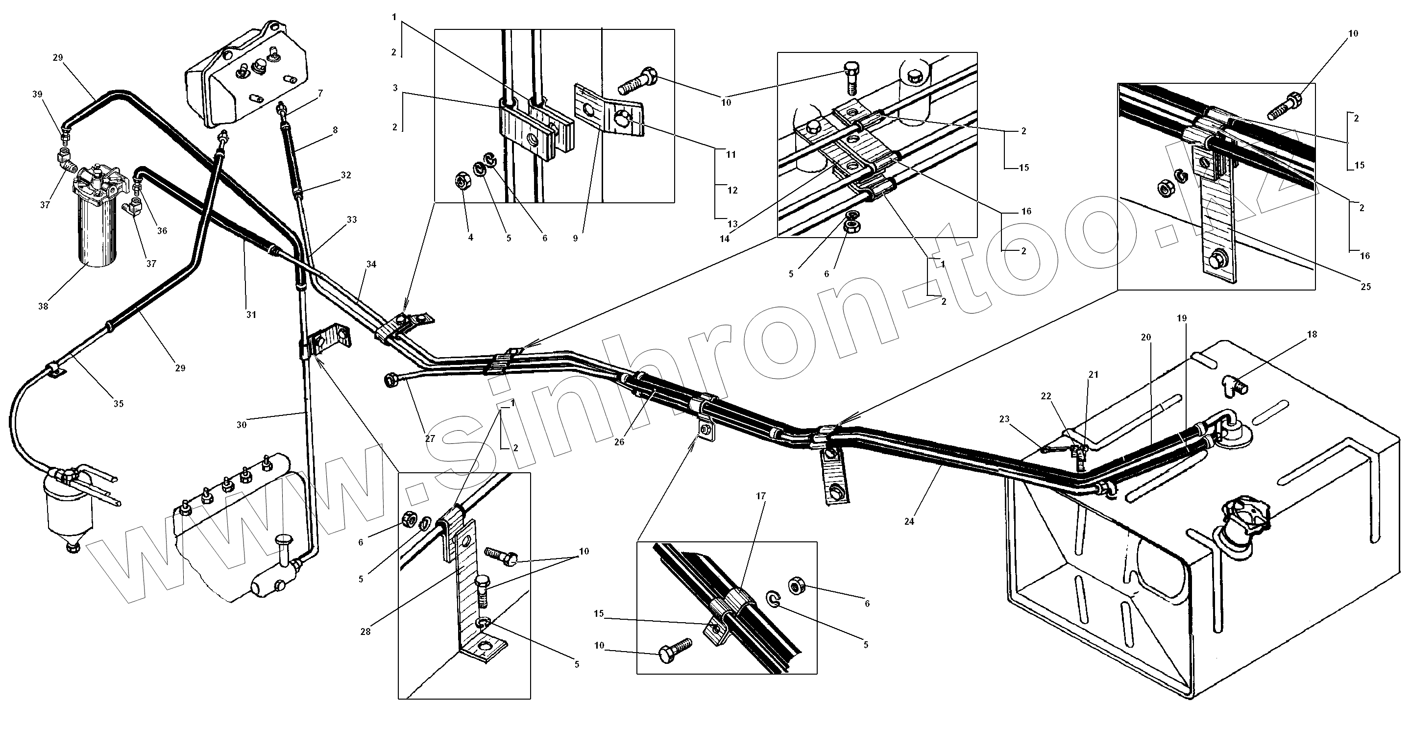 Каталог запасных частей к технике: УралАЗ УРАЛ-5557-31. Трубопроводы и шланги системы питания
