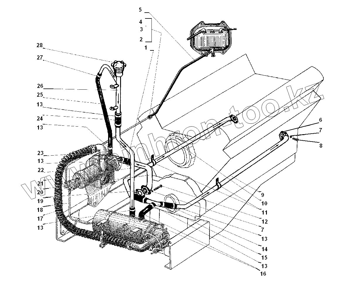 Каталог запасных частей к технике: УралАЗ УРАЛ-5557-31. Трубы и шланги системы предпускового подогрева