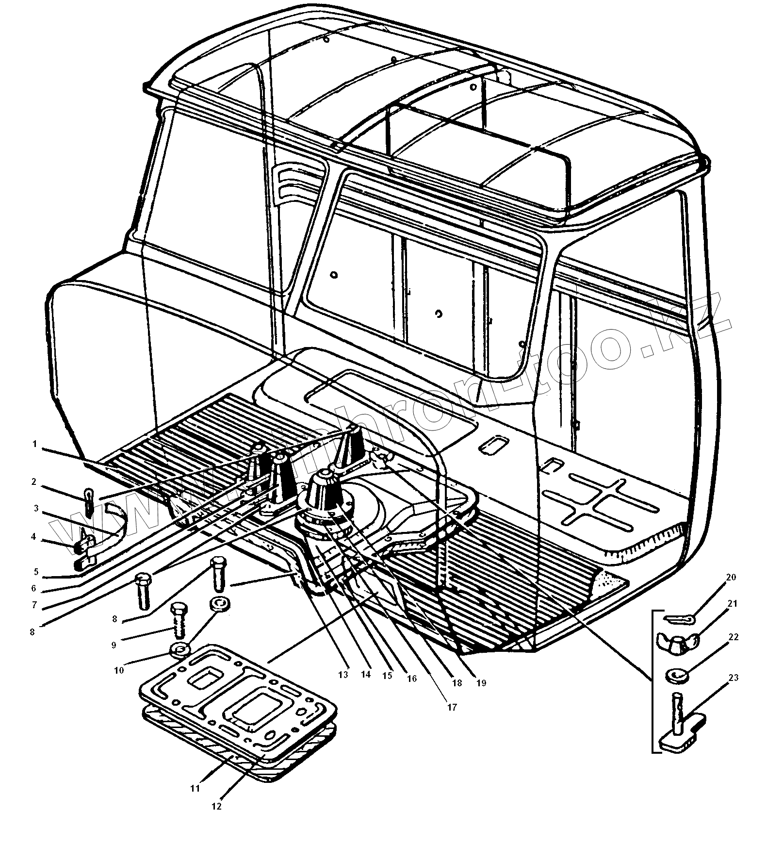 Каталог запасных частей к технике: УралАЗ УРАЛ-5557-31. Уплотнители рычагов и коврики пола кабины
