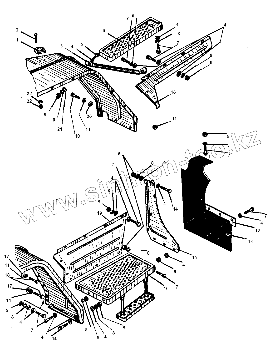 Каталог запасных частей к технике: УралАЗ УРАЛ-5557-31. Установка правой и левой подножек