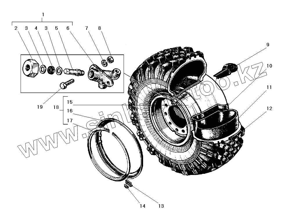 Каталог запасных частей к технике: УралАЗ УРАЛ-5557-40. Колесо и шина