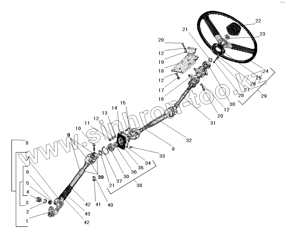 Каталог запасных частей к технике: УралАЗ УРАЛ-5557-40. Колесо и вал рулевого управления