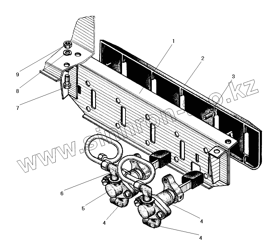 Крепление трубопроводов и шлангов гидропневматического привода рабочих тормозов