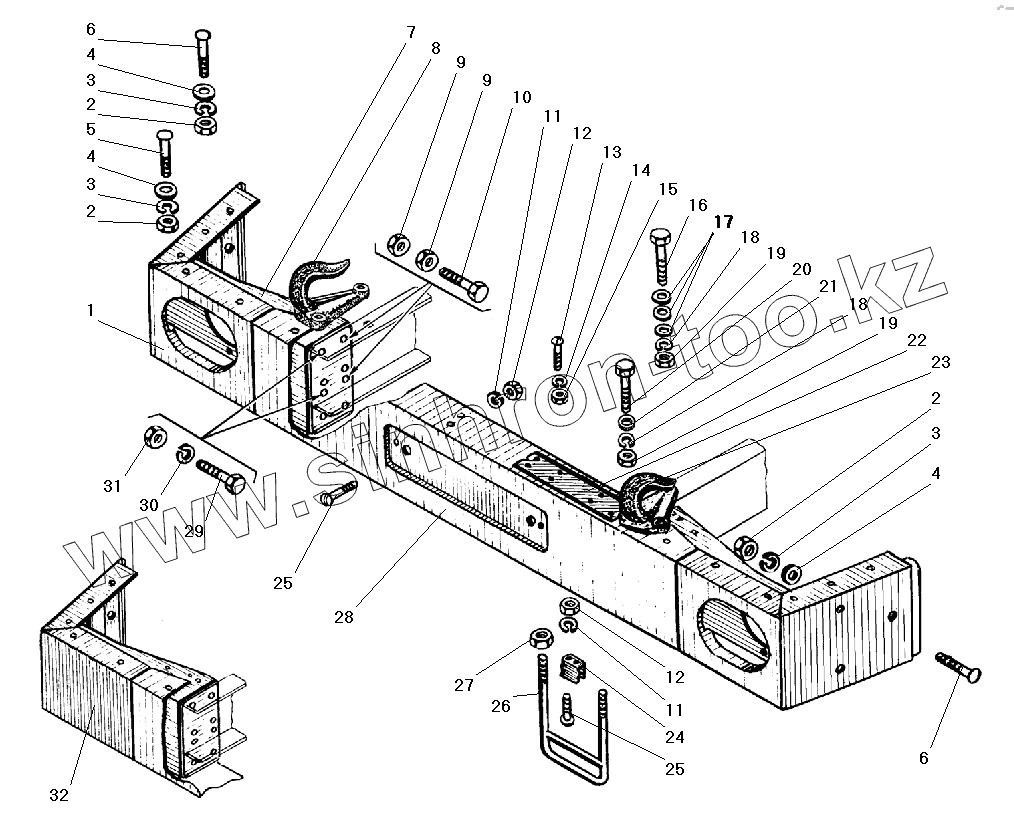 Каталог запасных частей к технике: УралАЗ УРАЛ-5557-40. Передний буфер и буксирные крюки