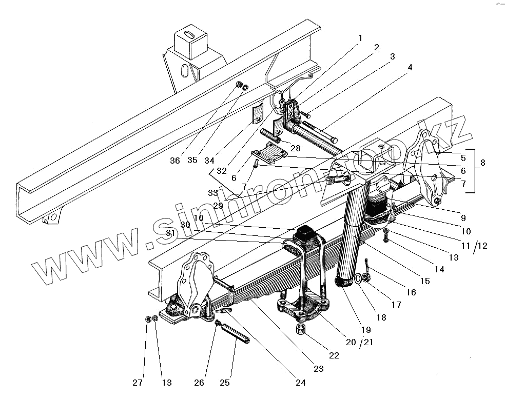 Каталог запасных частей к технике: УралАЗ УРАЛ-5557-40. Передняя подвеска