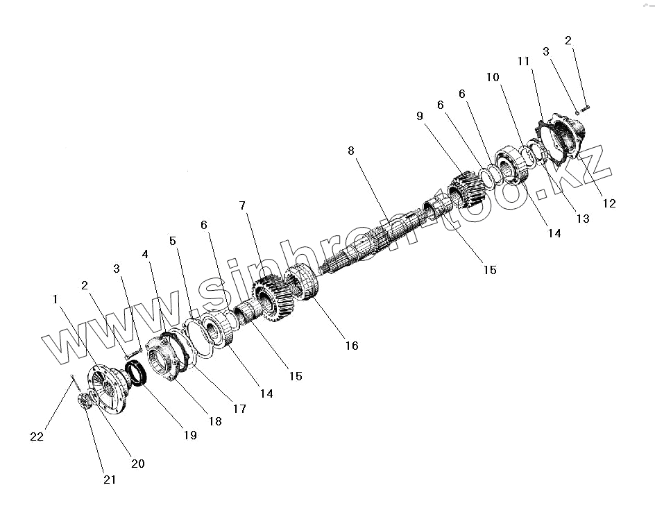 Каталог запасных частей к технике: УралАЗ УРАЛ-5557-40. Первичный вал раздаточной коробки