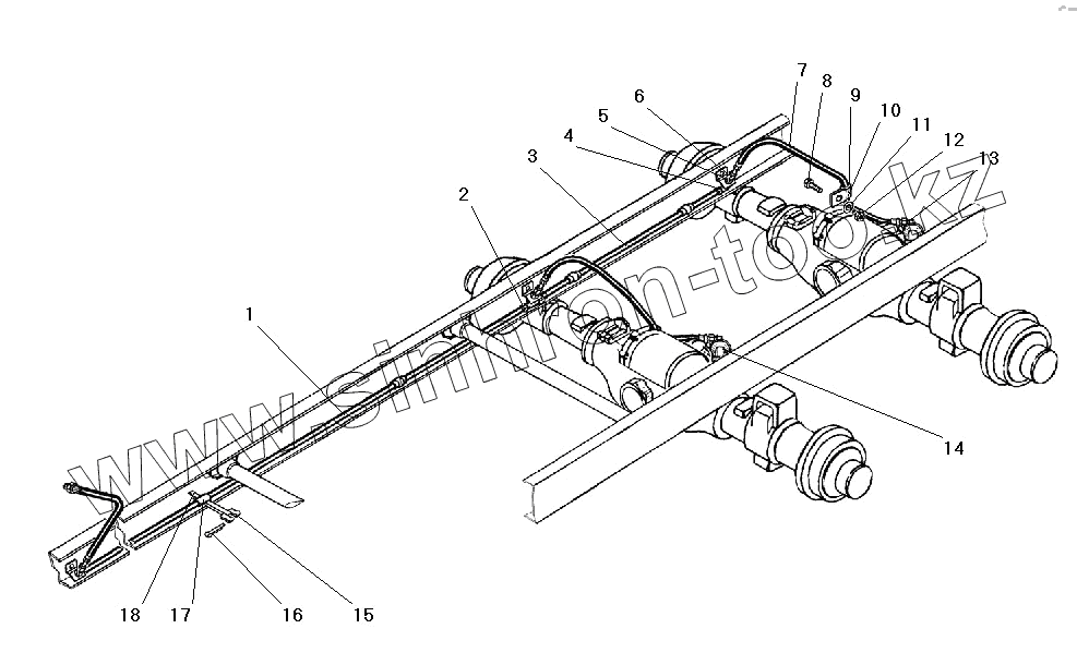 Каталог запасных частей к технике: УралАЗ УРАЛ-5557-40. Привод блокировки межколесных дифференциалов