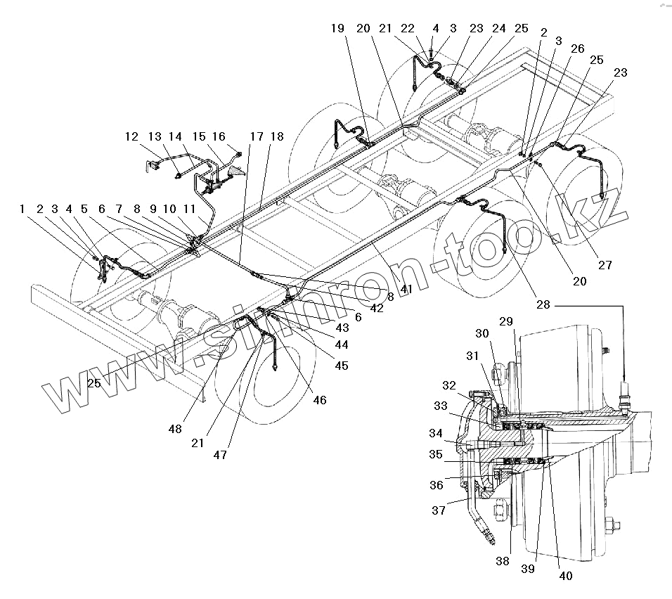| 48 | 432007-3125034-02 | Трубка к левому переднему колесу в сборе |