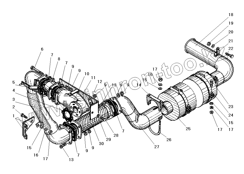 Каталог запасных частей к технике: УралАЗ УРАЛ-5557-40. Система выпуска газов
