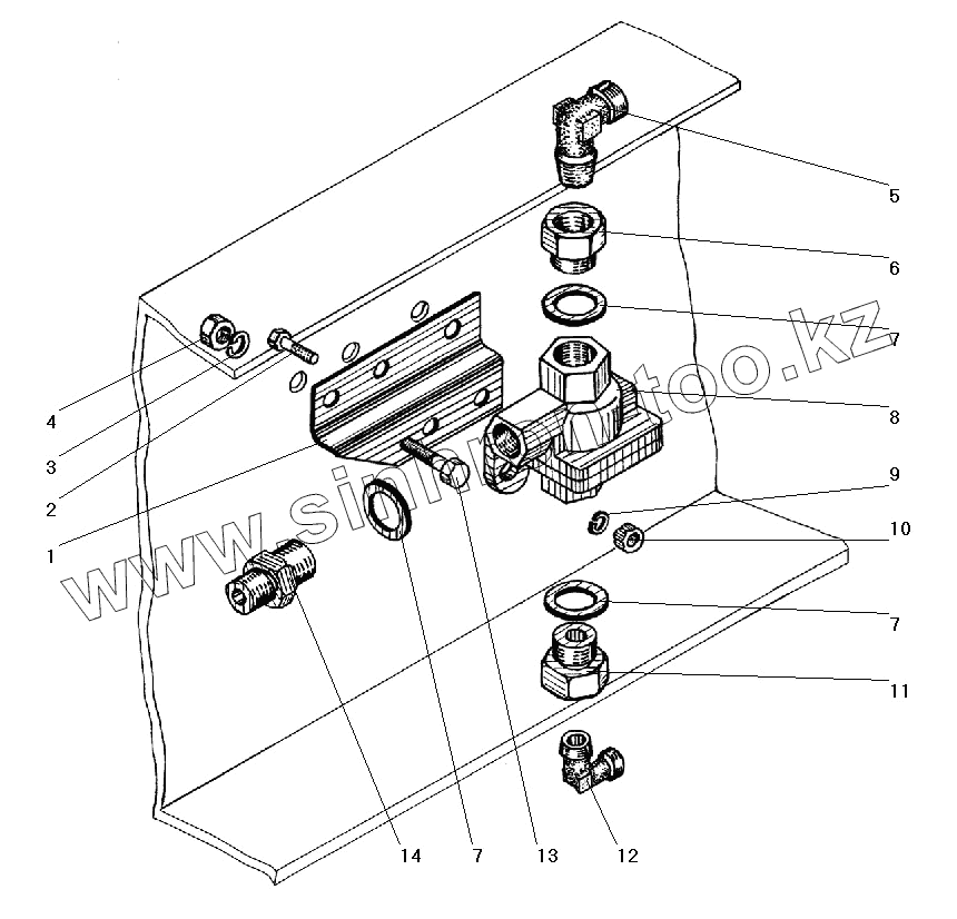Каталог запасных частей к технике: УралАЗ УРАЛ-5557-40. Установка двухмагистрального клапана