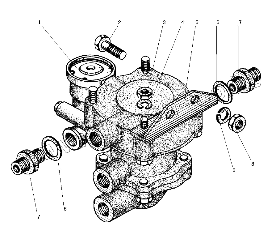 Каталог запасных частей к технике: УралАЗ УРАЛ-5557-40. Установка клапана прицепа с защитным клапаном