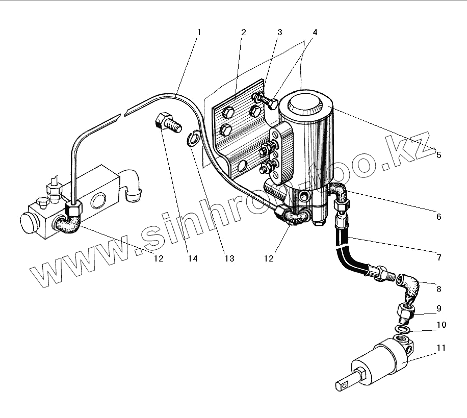 Каталог запасных частей к технике: УралАЗ УРАЛ-5557-40. Установка клапана с трубками
