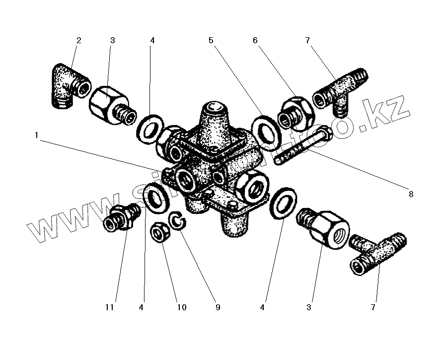 Каталог запасных частей к технике: УралАЗ УРАЛ-5557-40. Установка тройного защитного клапана