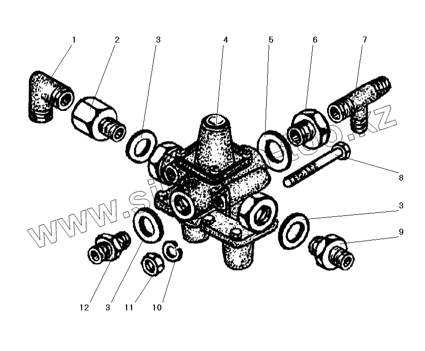 Каталог запасных частей к технике: УралАЗ УРАЛ-5557-40. Установка тройного защитного клапана без АБС