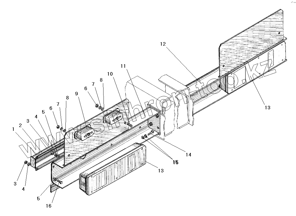 Каталог запасных частей к технике: УралАЗ УРАЛ-5557-40. Установка задних осветительных приборов