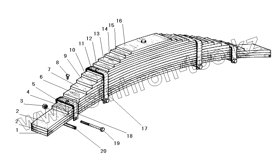 Каталог запасных частей к технике: УралАЗ УРАЛ-5557-40. Задняя рессора
