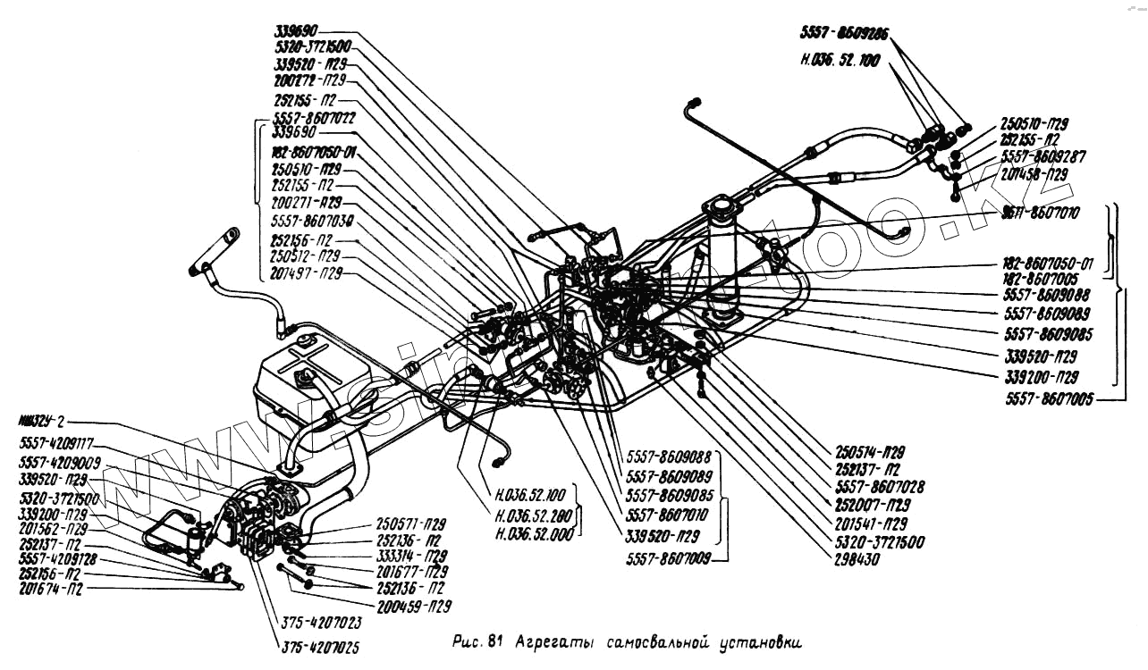 Каталог запасных частей к технике: УралАЗ УРАЛ-5557. Агрегаты самосвальной установки