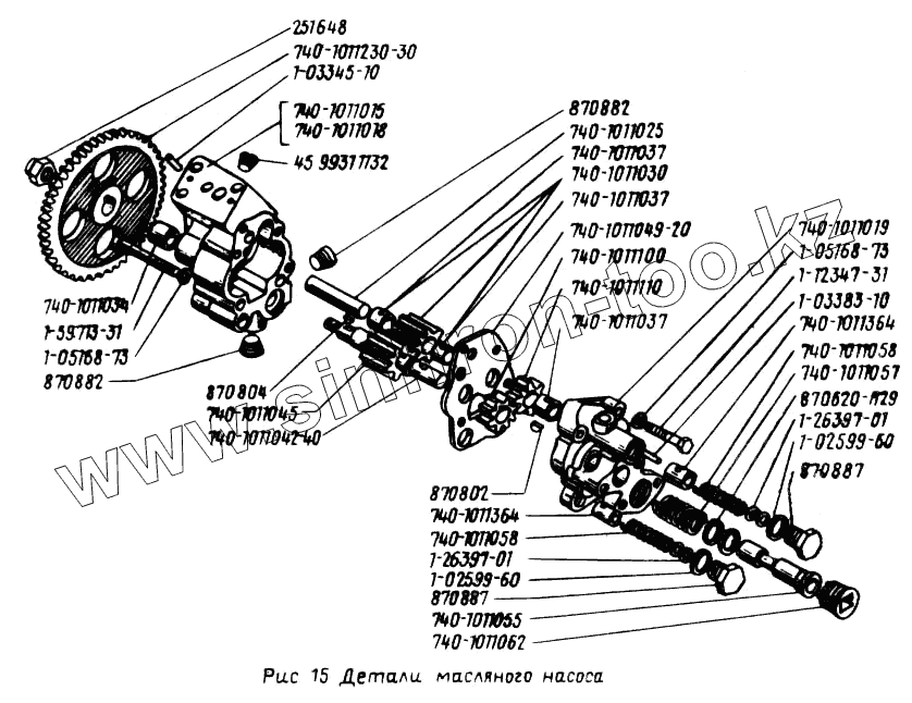Каталог запасных частей к технике: УралАЗ УРАЛ-5557. Детали масляного насоса