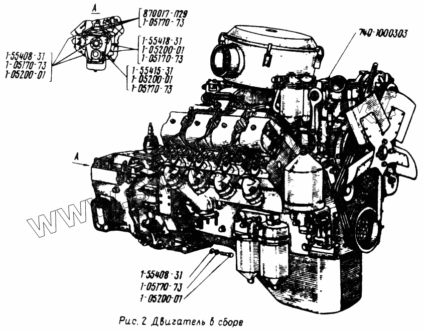 Каталог запасных частей к технике: УралАЗ УРАЛ-5557. Двигатель в сборе