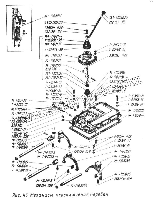 Каталог запасных частей к технике: УралАЗ УРАЛ-5557. Механизм переключения передач