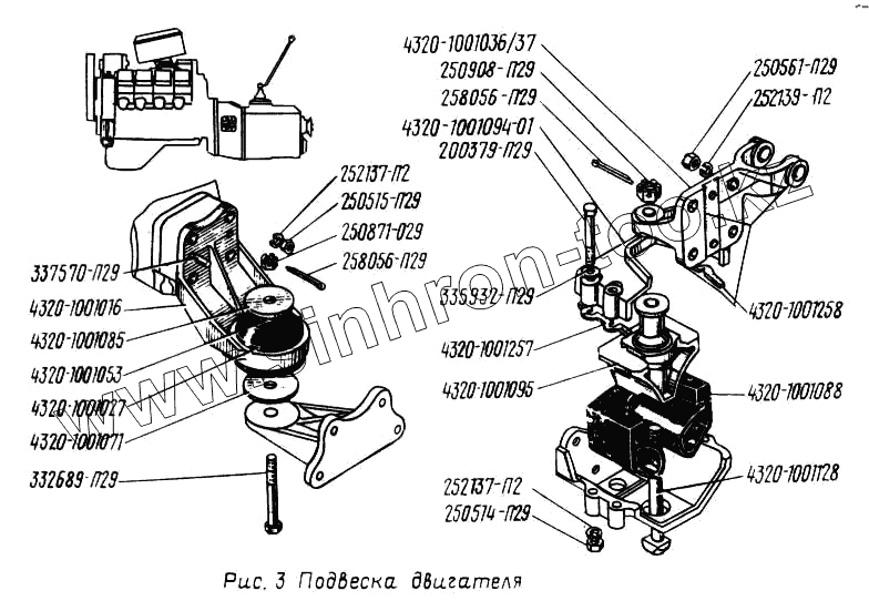 Каталог запасных частей к технике: УралАЗ УРАЛ-5557. Подвеска двигателя