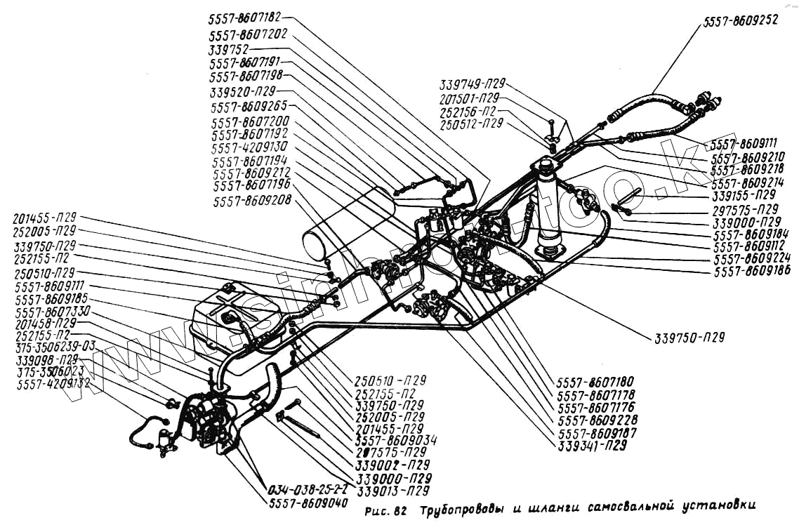 Каталог запасных частей к технике: УралАЗ УРАЛ-5557. Трубопроводы и шланги самосвальной установки