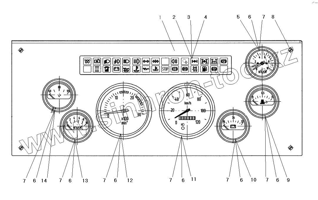 Каталог запасных частей к технике: УралАЗ УРАЛ-63674. Панель приборов