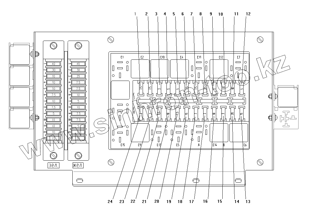 Каталог запасных частей к технике: УралАЗ УРАЛ-63674. Предохранители на центральном распределительном устройстве