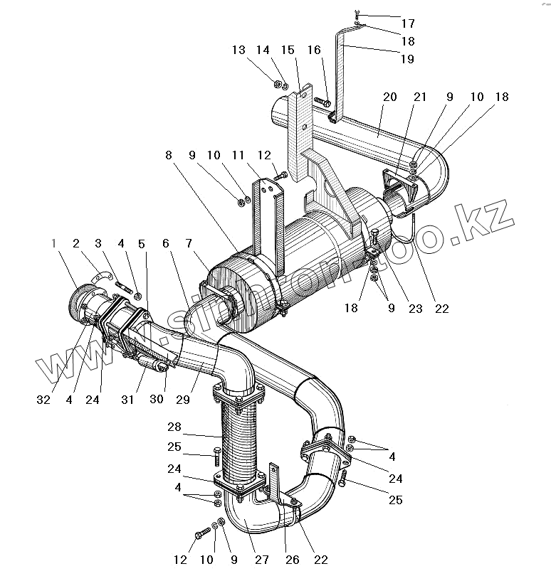 Каталог запасных частей к технике: УралАЗ УРАЛ-63674. Система выпуска газов