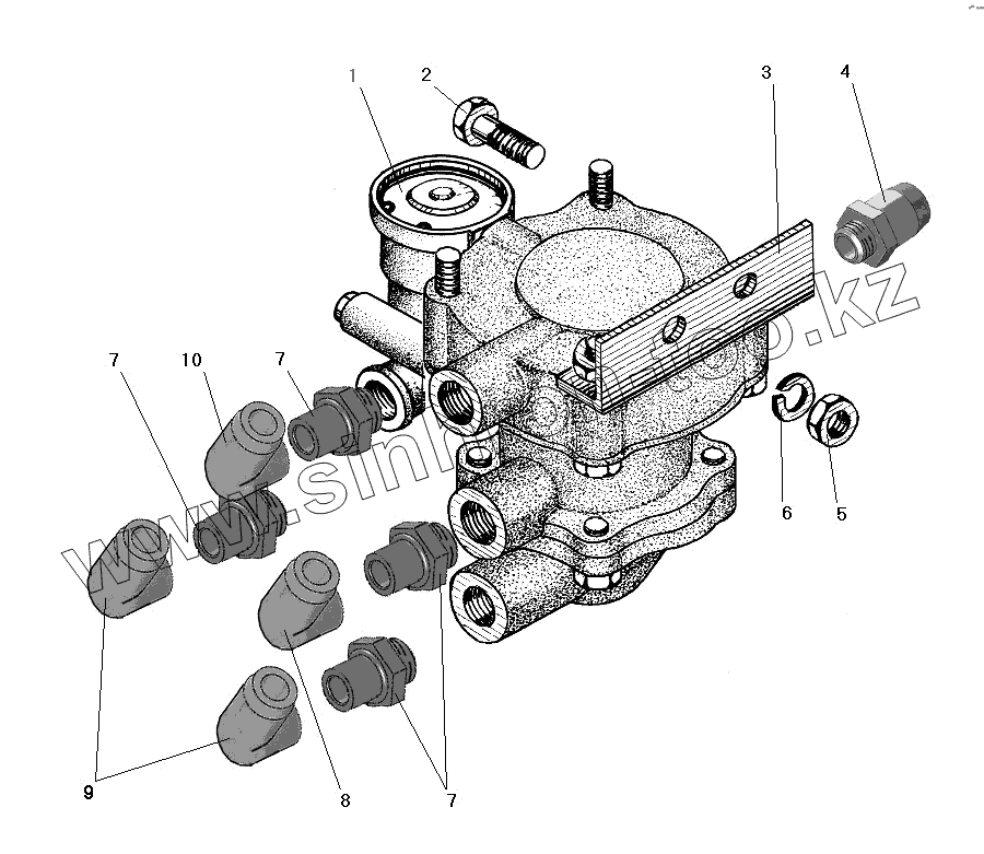 Каталог запасных частей к технике: УралАЗ УРАЛ-63674. Установка клапана прицепа с защитным клапаном