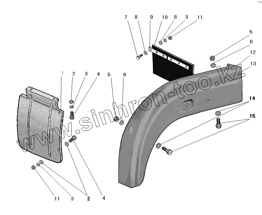 Каталог запасных частей к технике: УралАЗ УРАЛ-63674. Установка крыльев и брызговиков