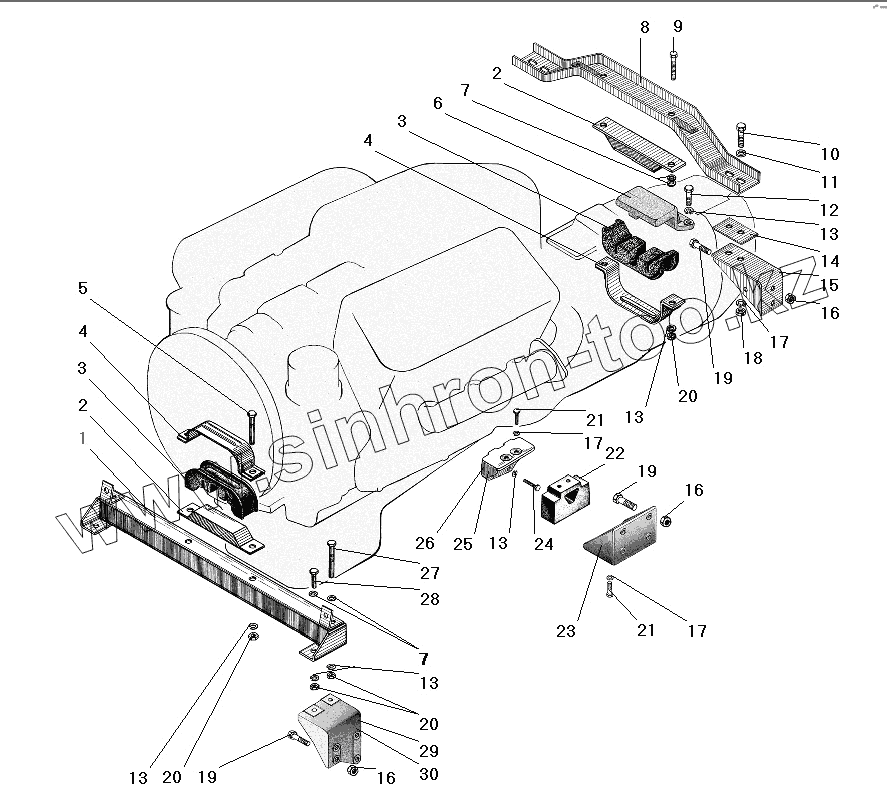 Каталог запасных частей к технике: УралАЗ УРАЛ-63685. Подвеска двигателя
