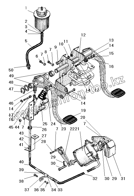 Каталог запасных частей к технике: УралАЗ УРАЛ-63685. Привод педалей сцепления и тормоза