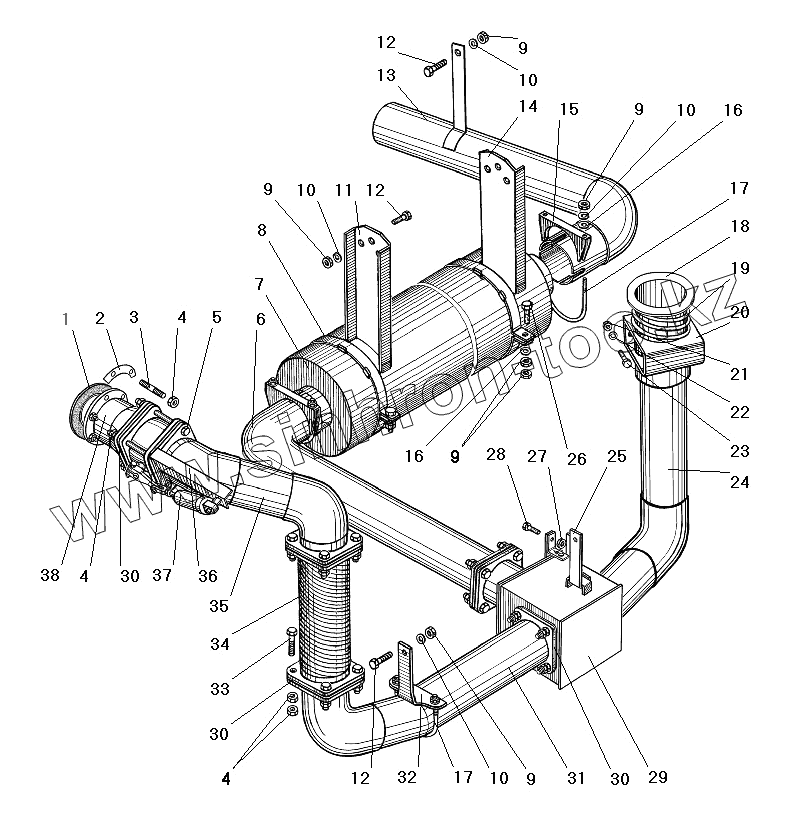 Каталог запасных частей к технике: УралАЗ УРАЛ-63685. Система выпуска газов