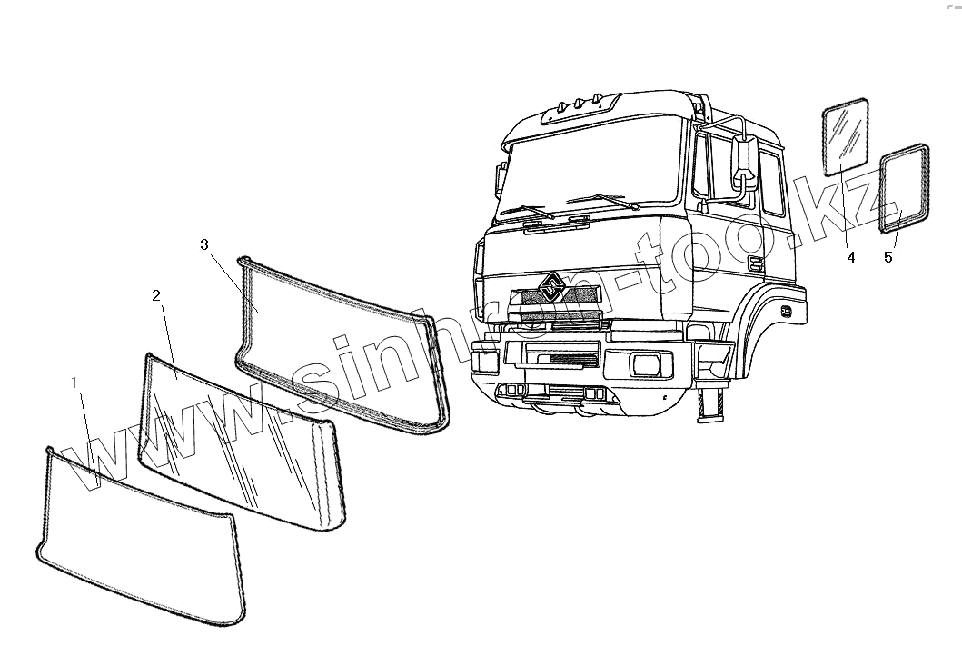 Каталог запасных частей к технике: УралАЗ УРАЛ-63685. Стекло ветровое