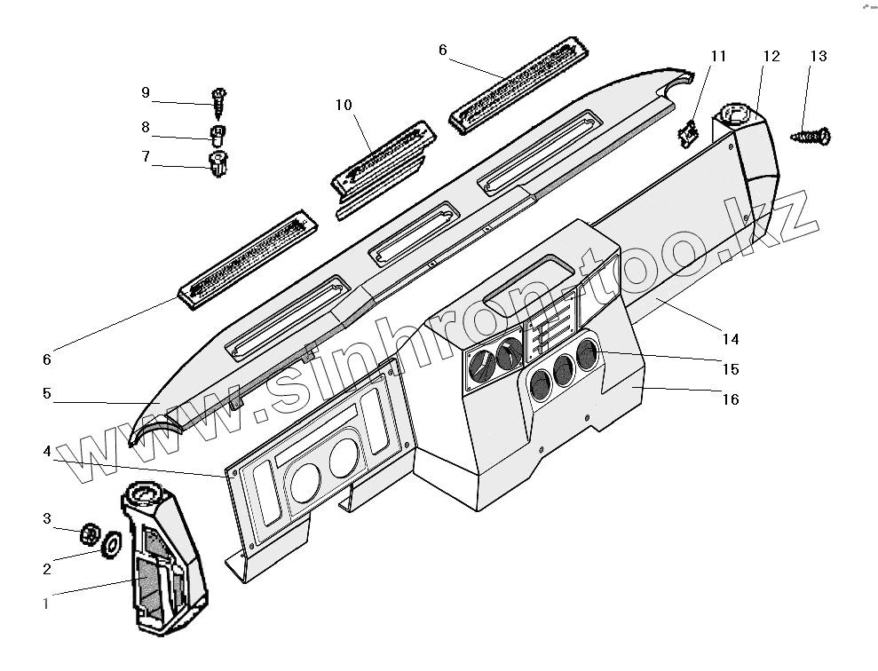 Каталог запасных частей к технике: УралАЗ УРАЛ-63685. Установка панели приборов