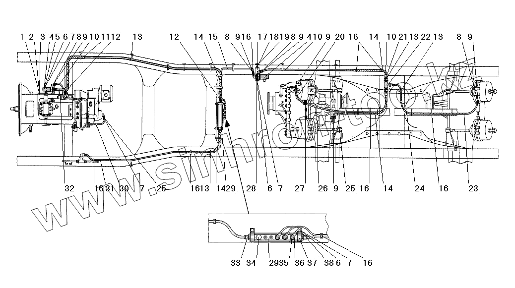 Каталог запасных частей к технике: УралАЗ УРАЛ-63685. Установка пневмоуправления агрегатами трансмиссии