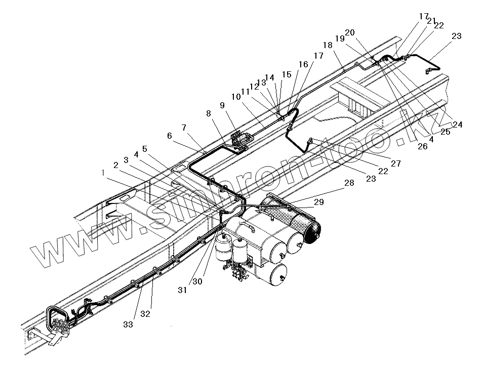 | 33 | 6364-3508520 | Трубка к ускорительному клапану первая |