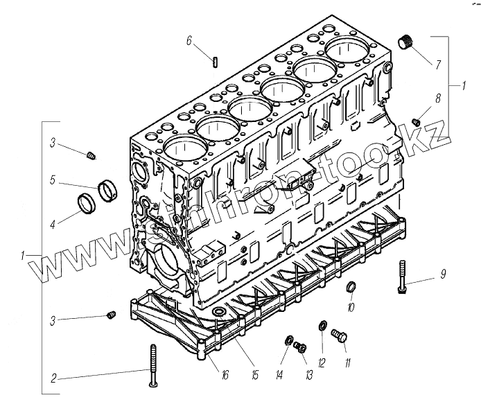 Каталог запасных частей к технике: УралАЗ УРАЛ-63704. Блок цилиндров двигателя