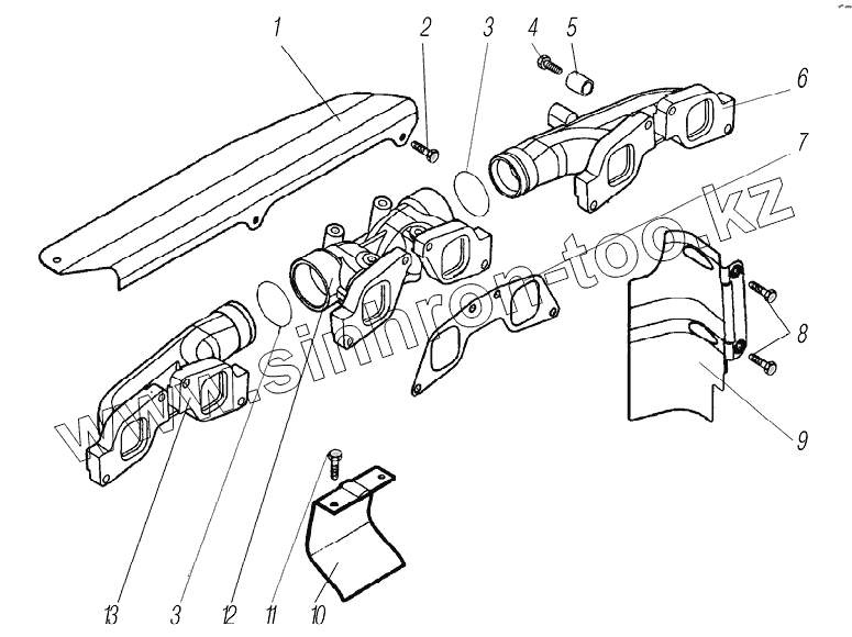 Каталог запасных частей к технике: УралАЗ УРАЛ-63704. Коллектор выпускной и экраны тепловые