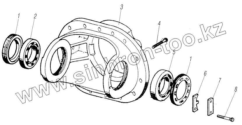 Каталог запасных частей к технике: УралАЗ УРАЛ-63704. Корпус и замок дифференциала переднего моста