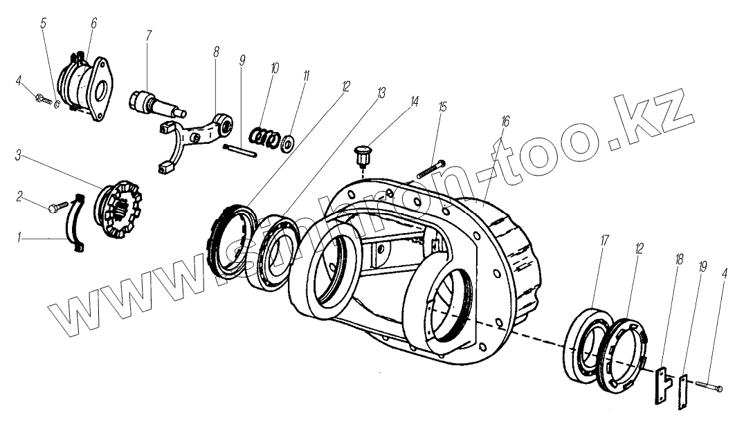 Каталог запасных частей к технике: УралАЗ УРАЛ-63704. Корпус и замок дифференциала заднего моста