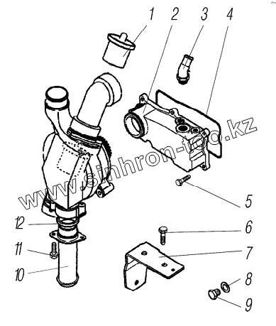 Каталог запасных частей к технике: УралАЗ УРАЛ-63704. Патрубки водяные и термостат