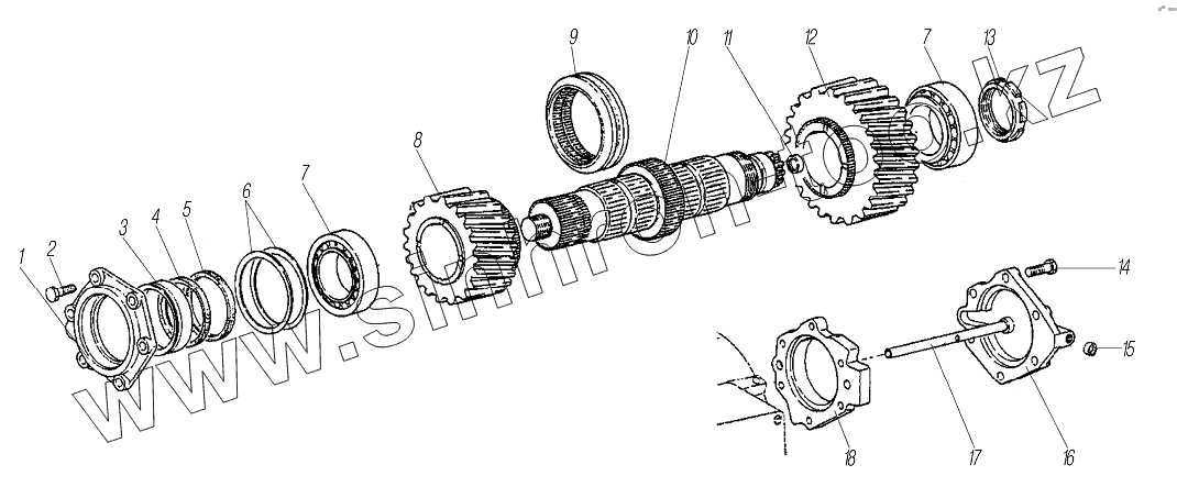 Каталог запасных частей к технике: УралАЗ УРАЛ-63704. Первичный вал раздаточной коробки