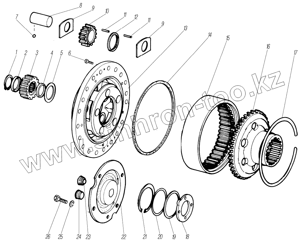 Каталог запасных частей к технике: УралАЗ УРАЛ-63704. Планетарный механизм переднего, среднего и заднего мостов