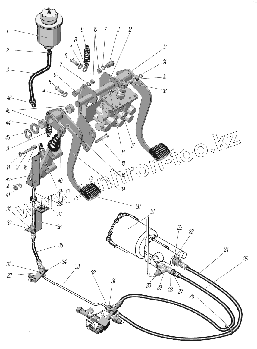 Каталог запасных частей к технике: УралАЗ УРАЛ-63704. Привод педалей сцепления и тормоза