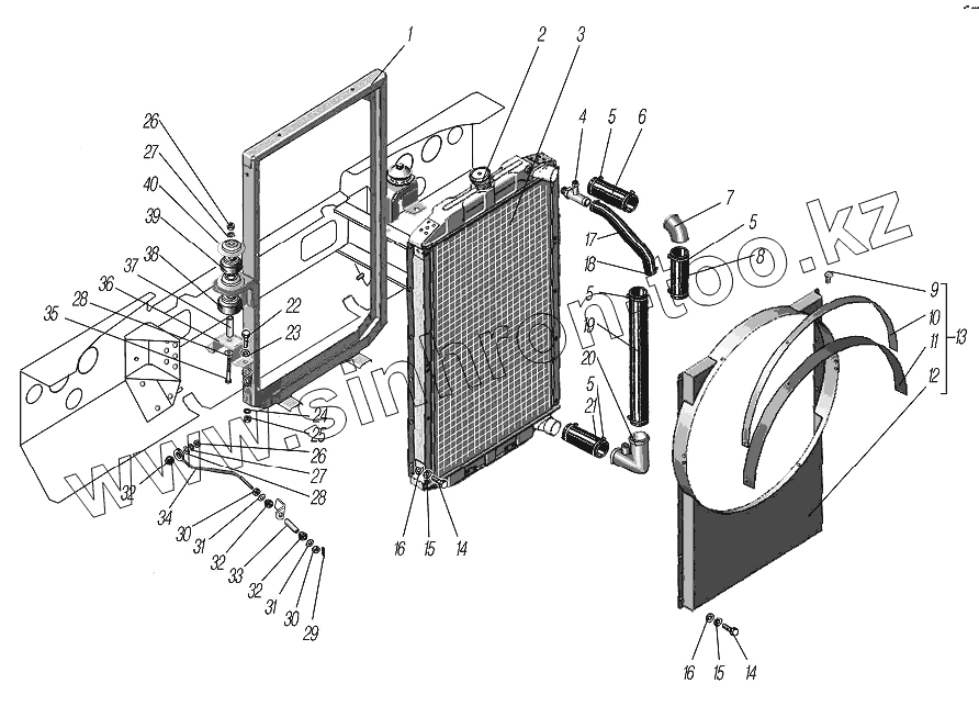 Каталог запасных частей к технике: УралАЗ УРАЛ-63704. Радиатор системы охлаждения