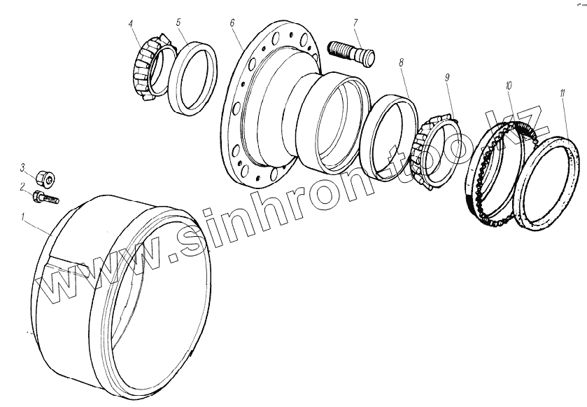 Каталог запасных частей к технике: УралАЗ УРАЛ-63704. Ступица колеса и тормозной барабан