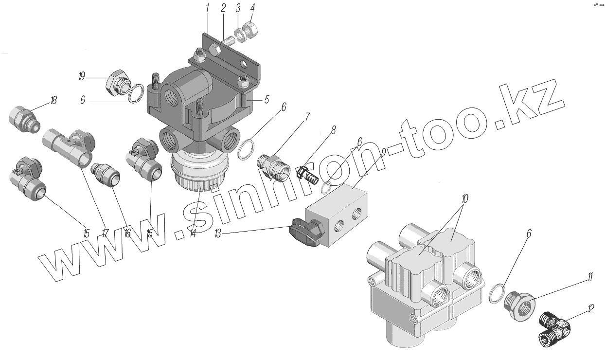 Каталог запасных частей к технике: УралАЗ УРАЛ-63704. Установка клапана ускорительного с модуляторами